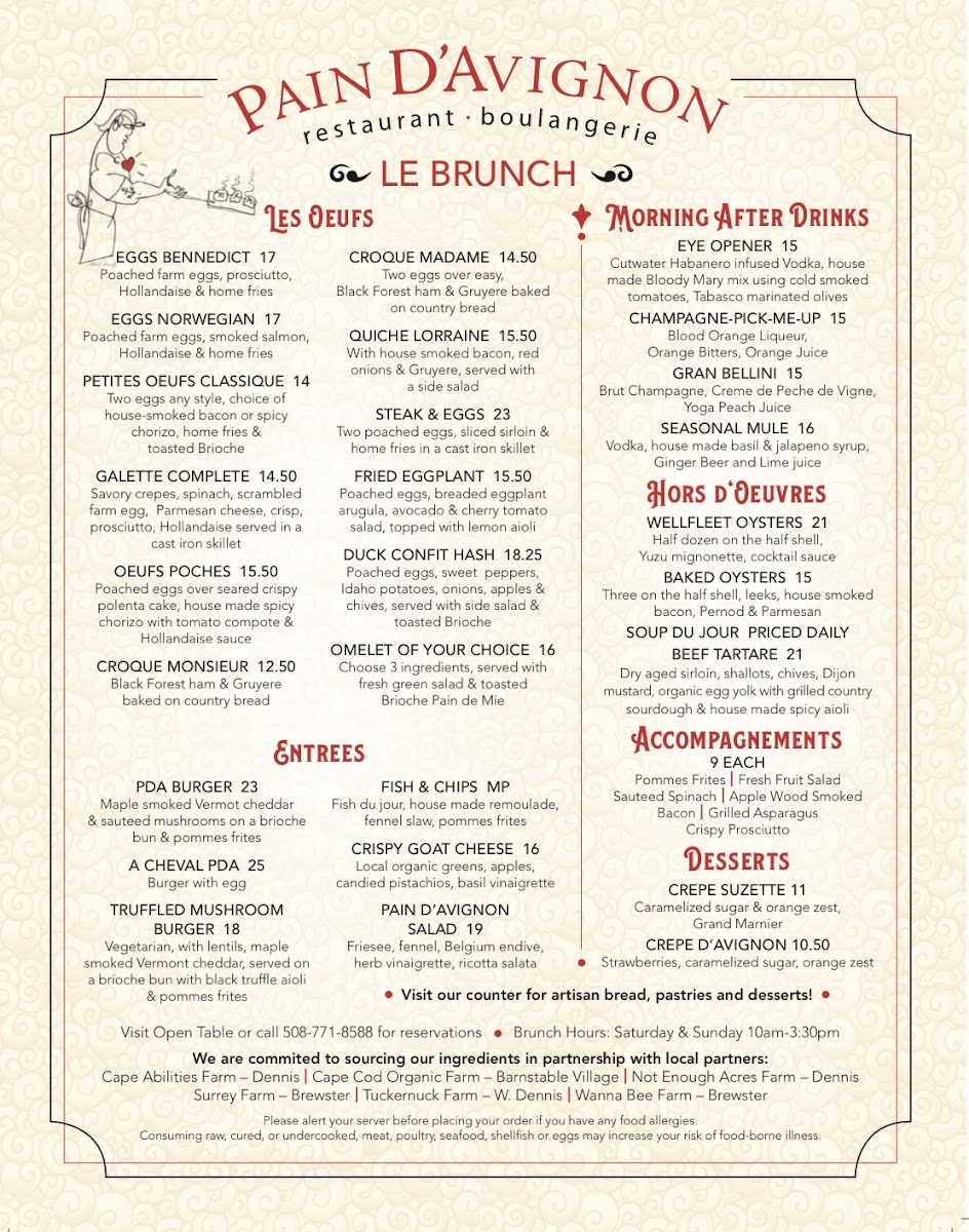 Welcome to Pain D'Avignon Restaurant Boulangerie, a French haven located in Hyannis, MA, where the art of baking meets exquisite dining. The menu is a delightful celebration of French cuisine, featuring delectable items like the famous Croque Madame and fresh, house-made quiches that transport you straight to Paris.
